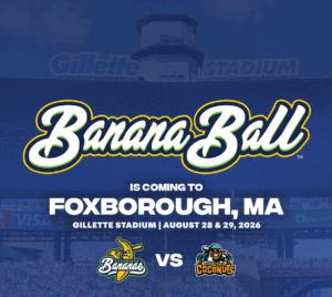 SAVANNAH BANANAS TO PLAY AT GILLETTE STADIUM FOR THE FIRST TIME ON AUGUST 28 & 29, 2026 This evening, the Savannah Bananas announced that Banana Ball is coming to Gillette Stadium for the first time on August 28 and 29, 2026 as part of their 2026 World Tour. The weekend will feature the Bananas taking […]